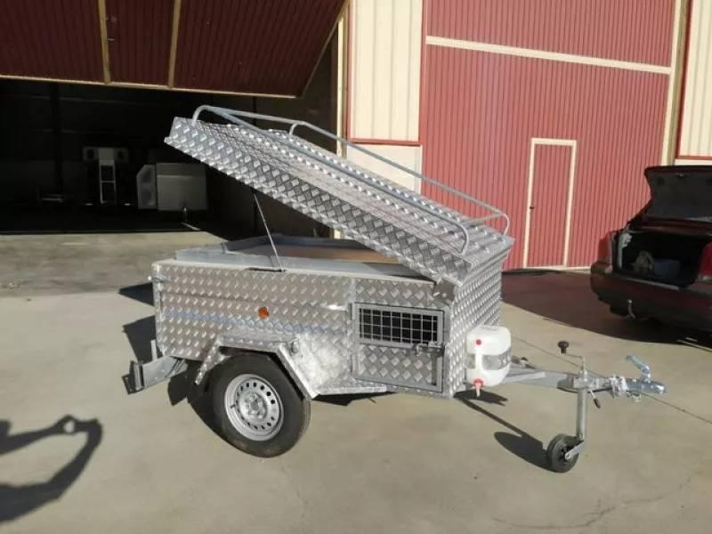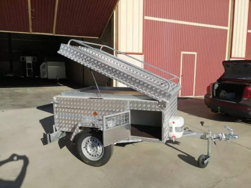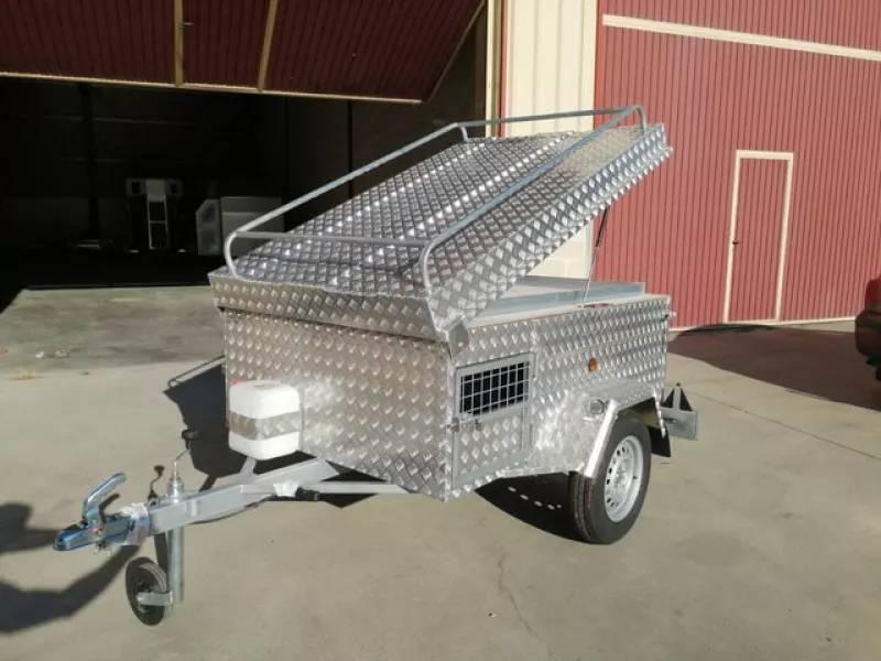REMOLQUE PERROS/CAZA ALUMINIO -ÚLTIMA UNIDAD EN STOCK A ESTE PRECIO -4 departamentos -Bandeja superior portaobjetos -Tapadera elevable con baca -Tablero finlandés antideslizante y reforzado en piso -Depósito grande de agua con grifo - Eje de 900 kg - Rueda en llanta de 13" - Rueda de repuesto y rueda jockey .RESÉRVALO YA .HACEMOS ENVÍOS A TODA ESPAÑA ☎️ 679 33 13 14 / 640 27 63 88 ☎️