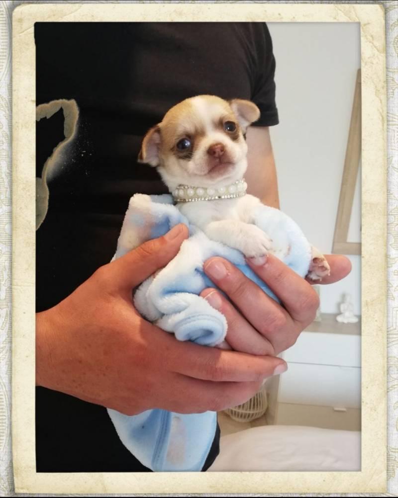Chihuahua macho listo para entregar!! Vacunado y desparasitado. No hago envíos,Entrego en mano ni cambio por nada. Se entrega en Castellón de la plana. Para mas info 643914636. Criados en libertad y con mucho amor por eso a día de hoy están sociabilizados y van a su empapador.