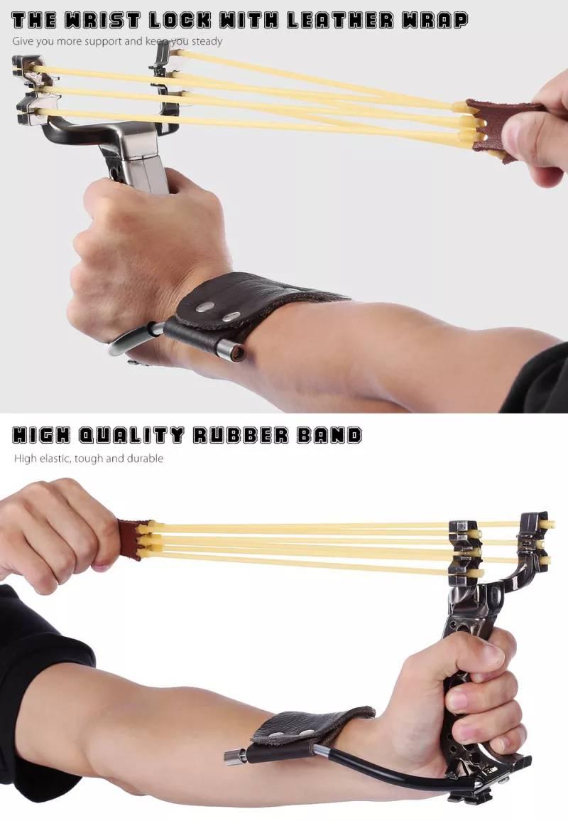 Poderoso tirachinas de caza con 3 tubos de goma banda de cuero profesional táctico de bolsillo.