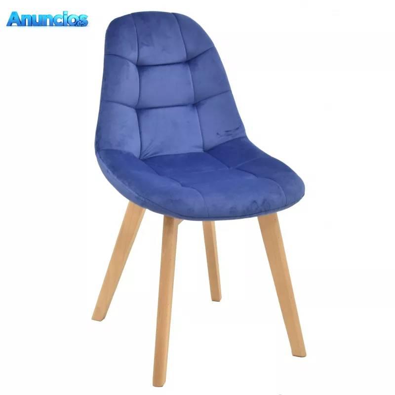 SILLA LOREAL, MADERA, TERCIOPELO AZUL