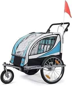 SAMAX 360° girable Remolque de Bicicleta para Niños en Azul - Silver Frame La atención llama la función de la rueda delantera giratoria de 360°. El banco ofrece sitio para un o dos niños, el peso total de 40 kg y una carga adicional máxima de 19,5 kg, no se debe exceder. Durante el viaje, proporcionan cinturónes en las caderas y en los hombros seguridad, así como la barra antivuelco. Si el portabebés se utiliza como un carrito para hacer footing, el freno de mano se utiliza para regular la velocidad. Datos técnicos: Dimensiones: aprox. 133 x 88 x 108 cm (LxAxA)Dimensiones espacio interior: aprox. 55 x 50 x 68 cm (AxPxA)Dimensiones espacio de almacenamiento detrás del asiento: aprox. 55 x 25 x 68 cm (AxPxA)Rueda delantera 360° giratoria y bloqueableEje trasero suspendido, absorbe los impactos y protege la parte posterior de sus hijosConstrucción y modificación facíl sin necesidad de herramientas, de carro para hacer footing a remolque para bicicleta de 1 o 2 niños (2 plazas)Neumáticos de 20 pulgadas (rueda delantera 10 pulgadas, ruedas traseras 20 pulgadas), ruedas neumáticasPeso total permitido (Remolque + Carga adicional): máx. 40 kgPeso propio del remolque: aprox. 20 kg / Carga adicional máxima: aprox. 20 kgEl remolque de bicicleta para niños no es adecuado para bicicletas eléctricas / pedelecsCaracterísticas: Estructura de acero muy estable con barra antivuelcoCinturones de cintura y hombrosBandera de seguridad con alta visibilidad y 8 reflectores, logo de reflejoCapota durable y arrollable como mosquitera y protección contra lluviaEdad recomendada: 18 mesesTenga en cuenta que los colores pueden variar un poco según la configuración de su pantalla.