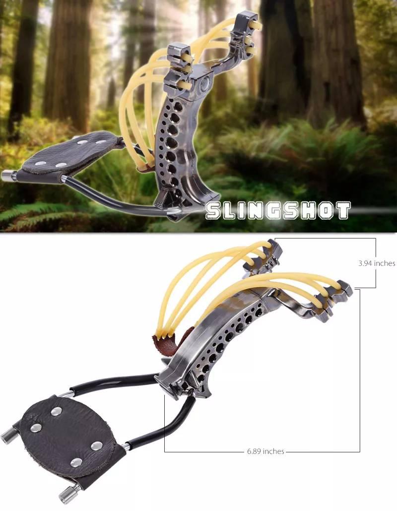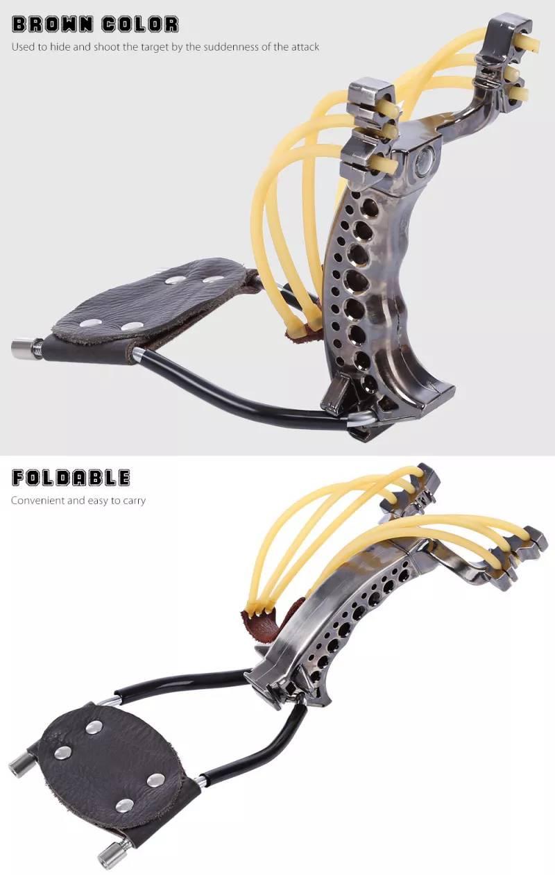 PODEROSO TIRACHINAS DE CAZA CON 3 TUBOS DE GOMA BANDA DE CUERO PROFESIONAL TáCTICO DE BOLSILLO. MOD-