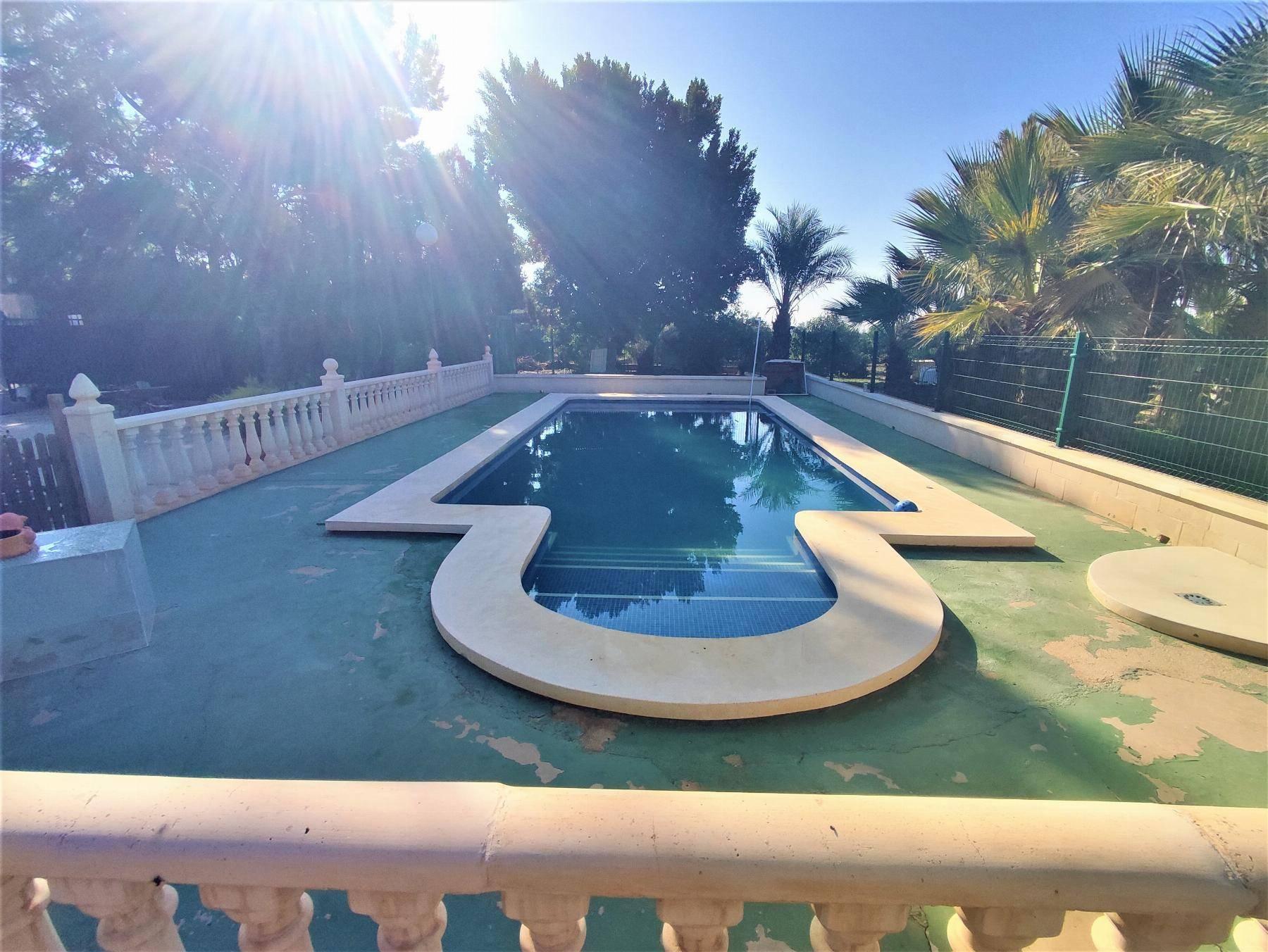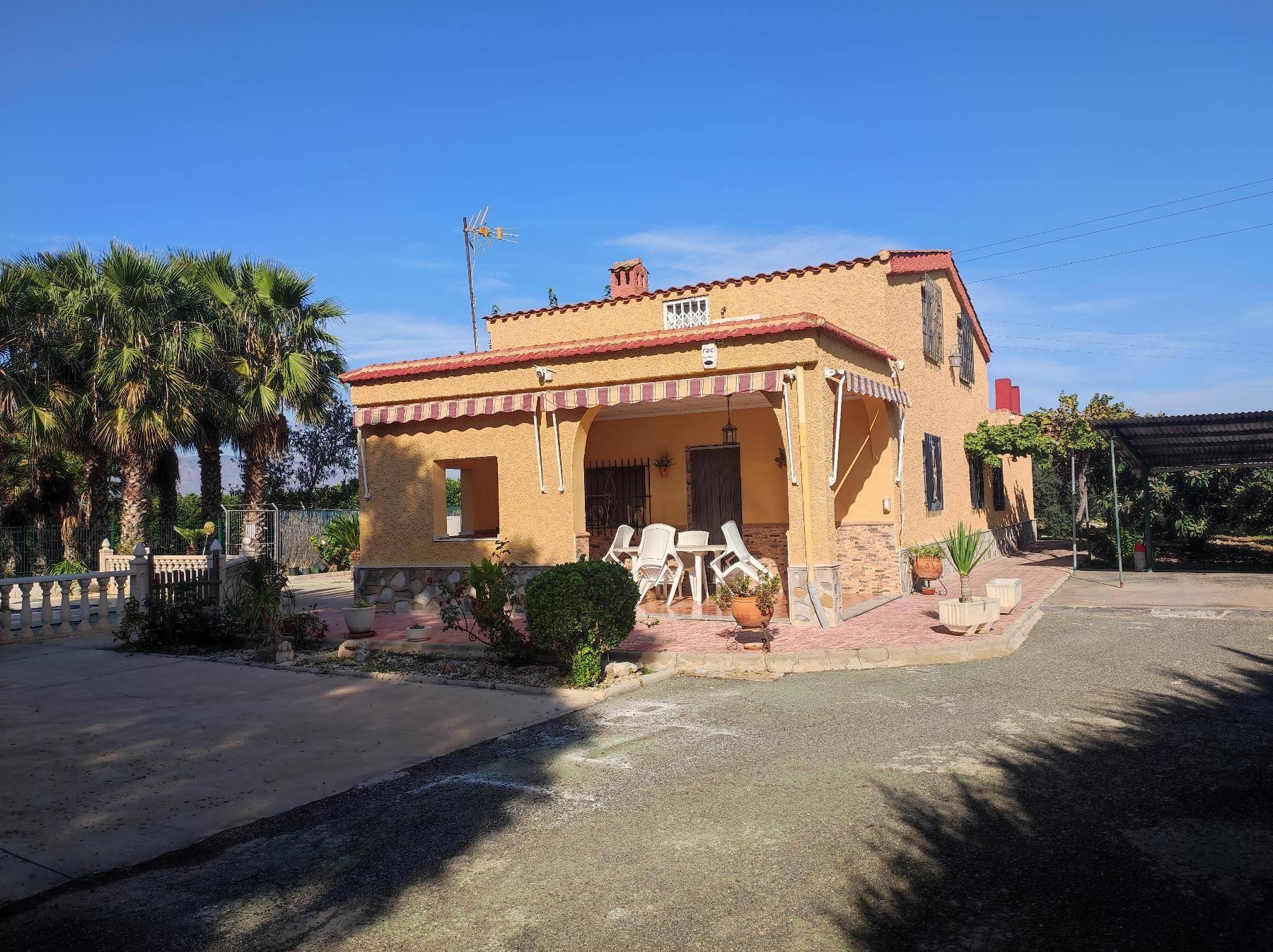 Chalet 5 dormitorios, 2 baños, 3 garajes, Buen estado, en Elche-Elx, Alicante ´´OPORTUNIDAD DE VIVIR TODO EL AÑO EN UNA VIVIENDA INDEPENDIENTE EN UNA DE LA MEJORES PARTIDAS Y A 5 MINUTOS DE ELCHE´´En una parcela de 6.459 metros completamente vallada y separada la zona de recreo con la zona de frutales, dispone de piscina completamente nueva, barbacoa, trastero y zona de aparcamiento.La vivienda consta de 2 plantas, en la primera un amplio porche del que se accede a salón con chimenea, 3 dormitorios uno de ellos como despacho, otra zona de estar con chimenea y baño completo.La segunda planta dispone de 2 grandes dormitorios abuhardillados con baño completo.´CONCIERTA CITA PARA VISITAR LA QUE PUEDE SER TU PROXIMA VIVIENDA´Podemos ayudarte con la financiación.