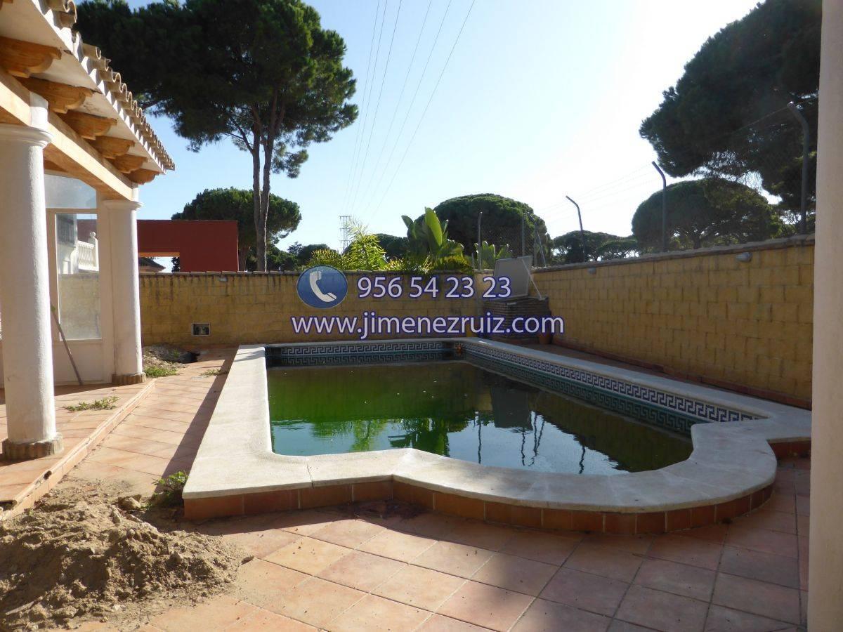 Chalet 5 dormitorios, 2 baños, 1 garajes, Semi reformado, en El Puerto de Santa María, Cádiz Chalet independiente en buena zona, cerca de centro comercial y servicios. La propiedad se encuentra en una finca de 900m2, rodeada de jardín, aseo y piscina. Se distribuye en dos plantas, en la planta principal cuenta con 5 dormitorios, salón comedor, cocina, amplio baño y aseo. Desde la cocina accede a un gran terraza acristalada en parte. La planta semisotano está dividida en la zona garaje espaciosa para varios vehículos y otra zona habitable con baño completo. Visítela sin compromiso.